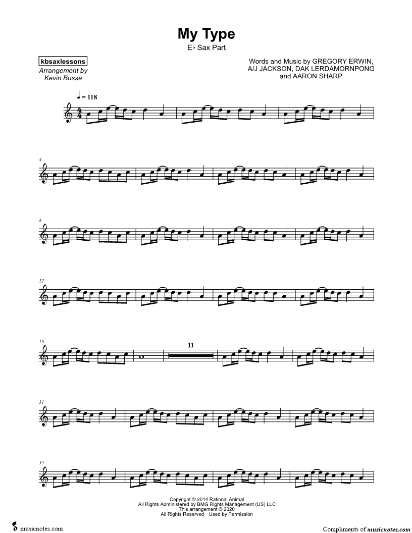 Alto Saxophone, range: D4-E5 | |