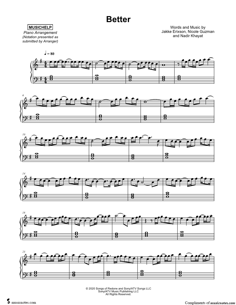 Musicnotes sells a wide variety of digital sheet music products including Singer Pros, Beginner Notes, Choral music, Piano Solos, Lead Sheets, Piano/Vocal/Guitar, Solo and Accompaniment, and fretted instrument tablature.