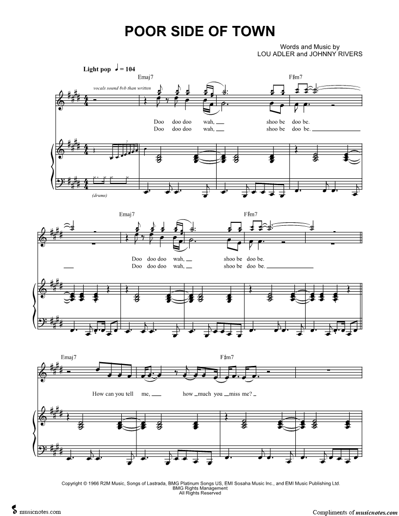 Musicnotes sells a wide variety of digital sheet music products including Singer Pros, Beginner Notes, Choral music, Piano Solos, Lead Sheets, Piano/Vocal/Guitar, Solo and Accompaniment, and fretted instrument tablature.