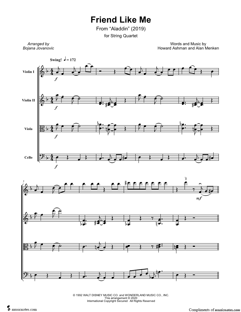 Violin 1, range: A3-G6 Violin 2, range: Ab3-D6 Viola, range: D3-D5 Cello, range: D2-Bb3 | |