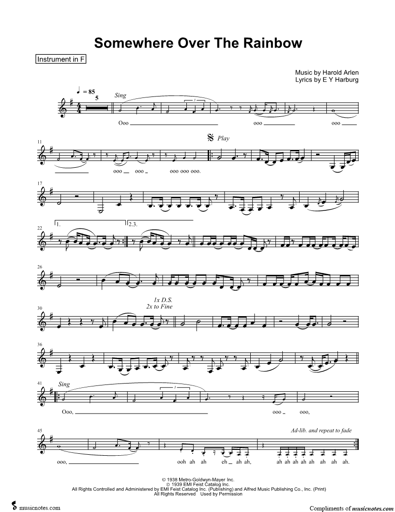 Over the Rainbow - F Instrument |