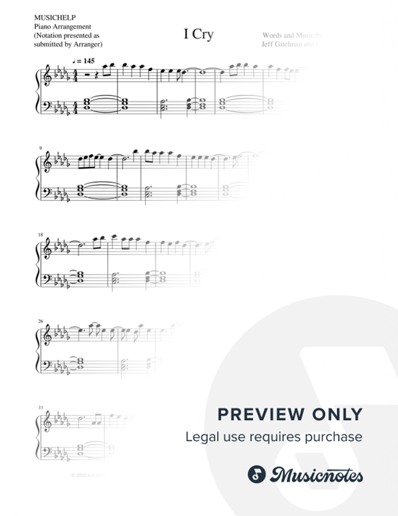 Many of the arrangements on Musicnotes have transpositions available, typically in C Major, as well as 3 sharps and 3 flats. If you do not see your desired key, you can request a transposition by reaching out to Customer Support.
