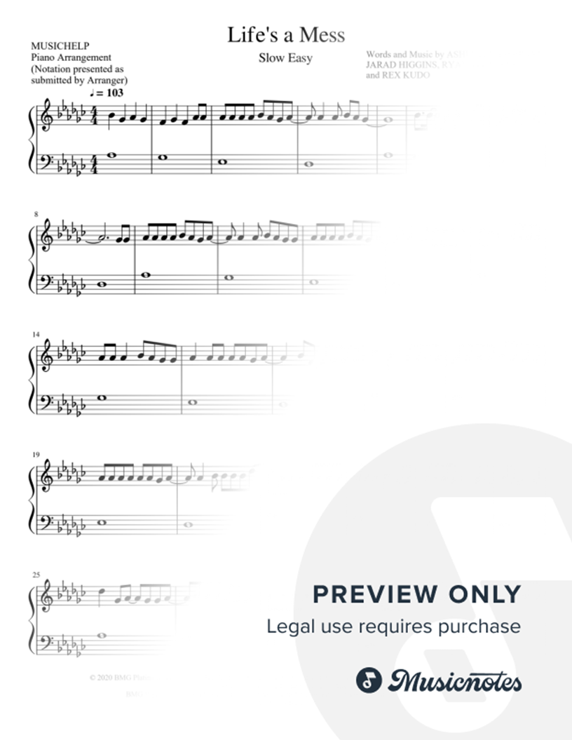 Many of the arrangements on Musicnotes have transpositions available, typically in C Major, as well as 3 sharps and 3 flats. If you do not see your desired key, you can request a transposition by reaching out to Customer Support.