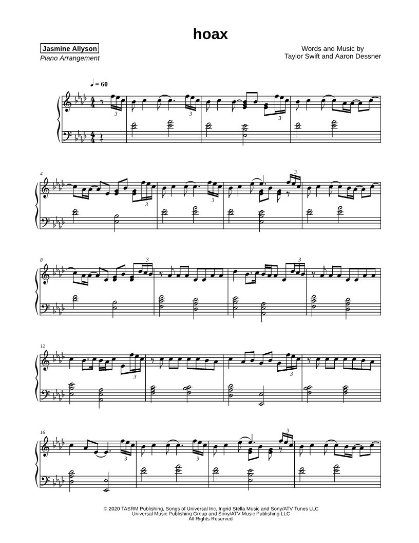Many of the arrangements on Musicnotes have transpositions available, typically in C Major, as well as 3 sharps and 3 flats. If you do not see your desired key, you can request a transposition by reaching out to Customer Support.