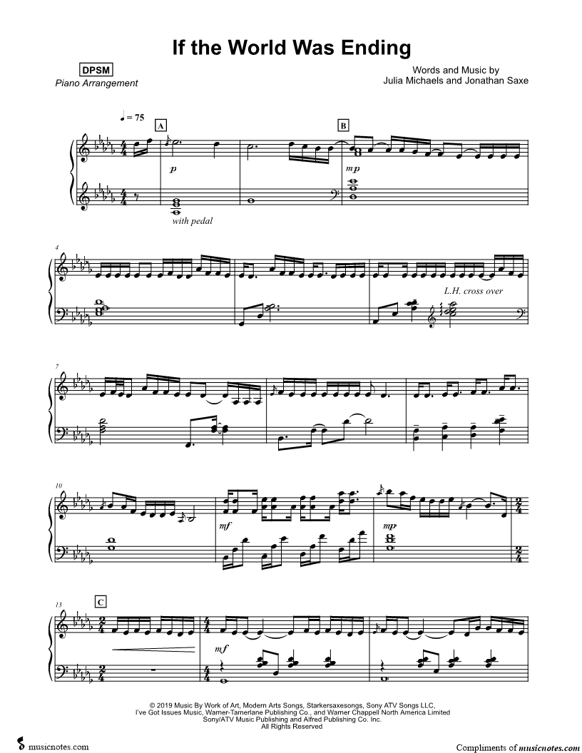 Many of the arrangements on Musicnotes have transpositions available, typically in C Major, as well as 3 sharps and 3 flats. If you do not see your desired key, you can request a transposition by reaching out to Customer Support.