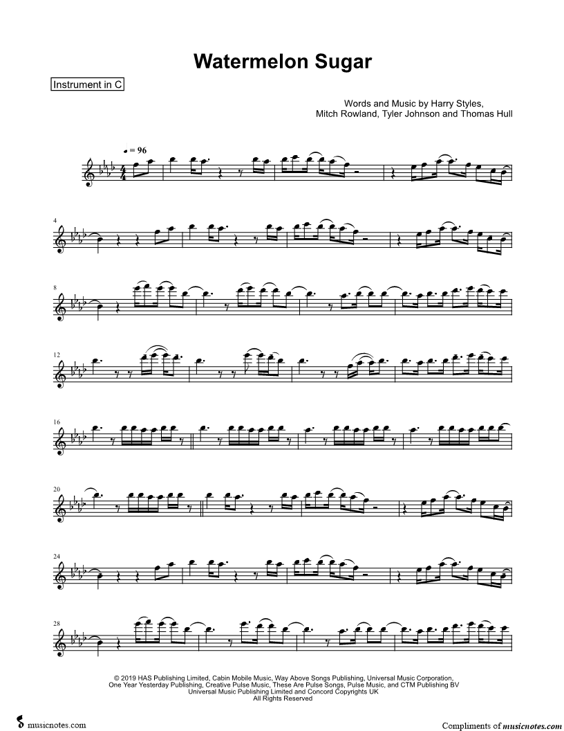 C Instrument, range: Bb4-F6 (Flute, Recorder, Violin or Oboe) | |