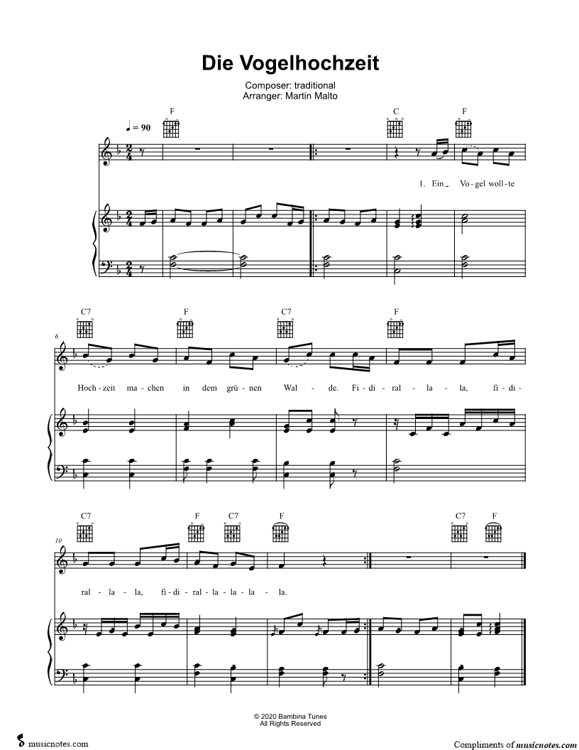 Ein Vogel wollte Hochzeit machen in dem grünen Walde. |