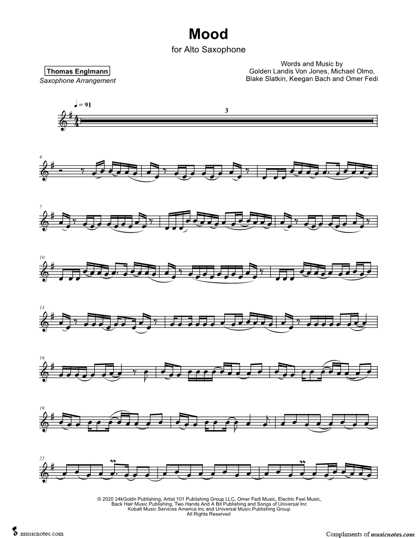 Alto Saxophone, range: D4-E5 C Instrument (Bb Instrument, Clarinet, Recorder, Violin, Oboe, Tenor Saxophone, Soprano Saxophone, Trumpet or Flute) | |