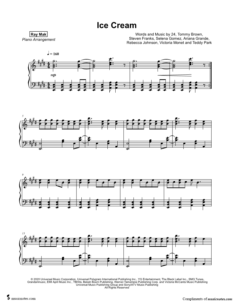 Musicnotes sells a wide variety of digital sheet music products including Singer Pros, Beginner Notes, Choral music, Piano Solos, Lead Sheets, Piano/Vocal/Guitar, Solo and Accompaniment, and fretted instrument tablature.