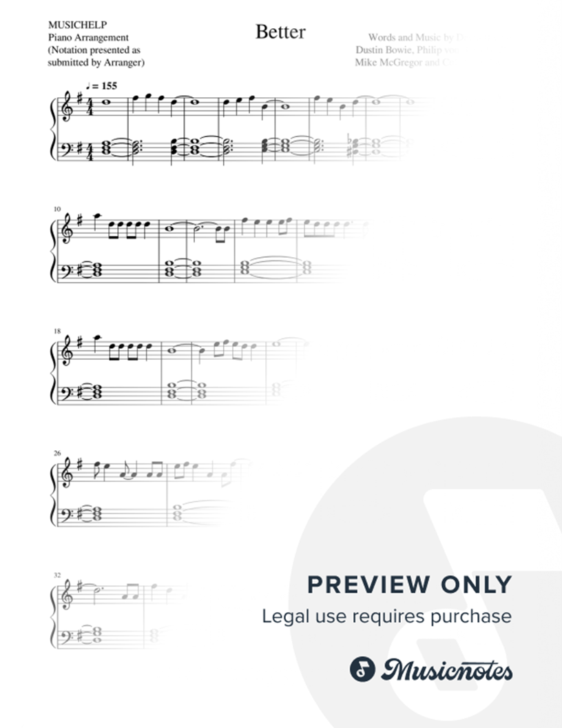 Musicnotes sells a wide variety of digital sheet music products including Singer Pros, Beginner Notes, Choral music, Piano Solos, Lead Sheets, Piano/Vocal/Guitar, Solo and Accompaniment, and fretted instrument tablature.