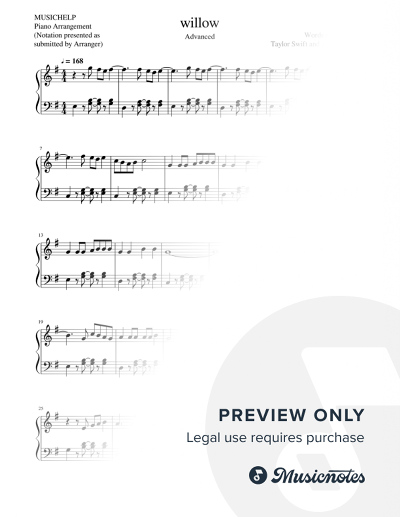 Musicnotes sells a wide variety of digital sheet music products including Singer Pros, Beginner Notes, Choral music, Piano Solos, Lead Sheets, Piano/Vocal/Guitar, Solo and Accompaniment, and fretted instrument tablature.