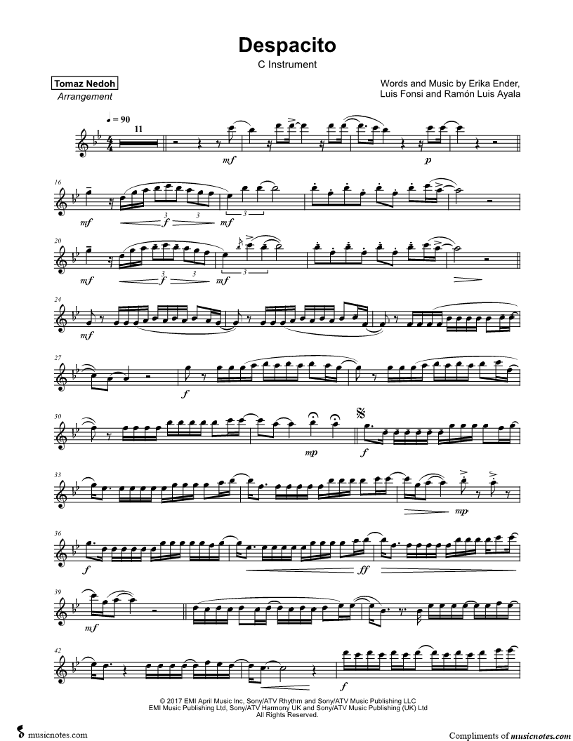 C Instrument, range: F4-F6 (Flute, Violin, Oboe or Recorder) | |