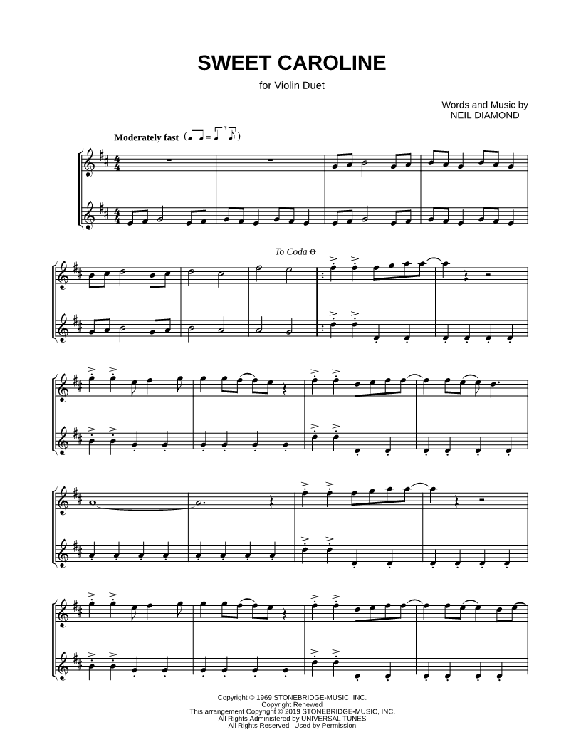 Sweet Caroline - Violin Duet |