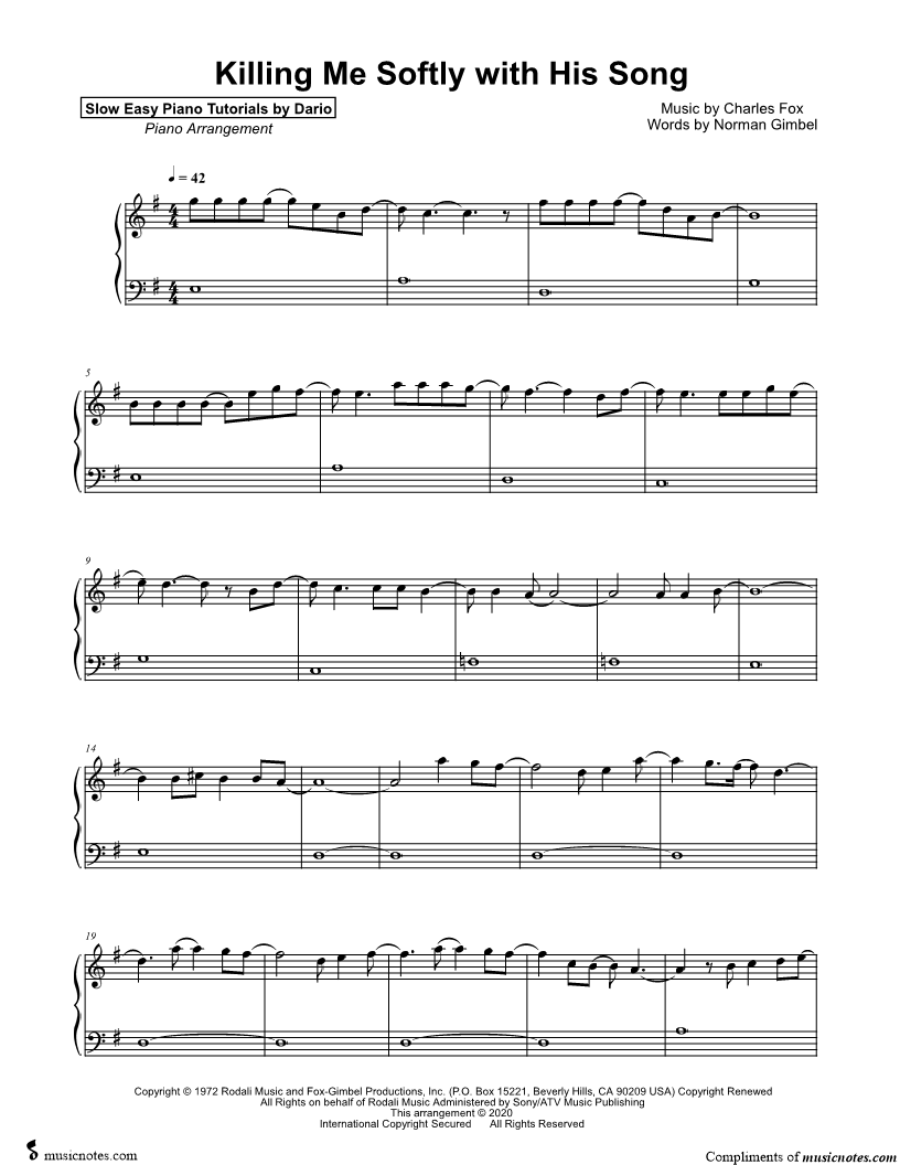 Killing Me Softly with His Song [Slow Easy Piano Tutorial] |