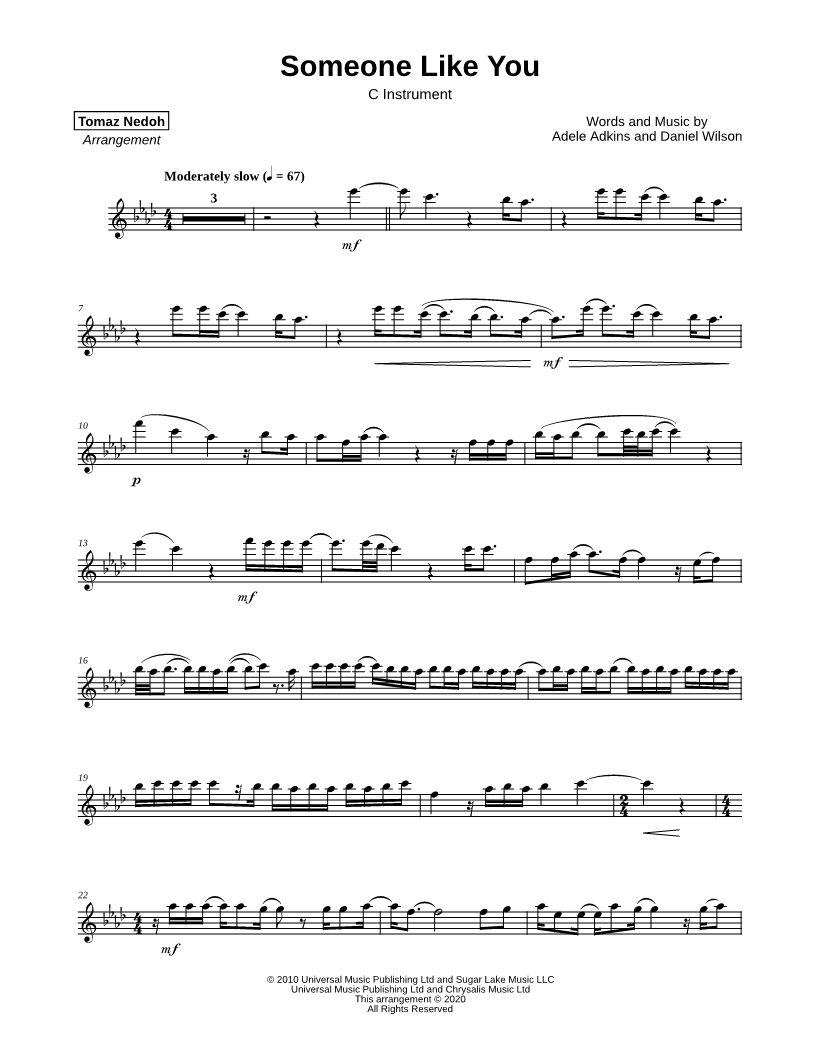 Someone Like You - C Instrument |