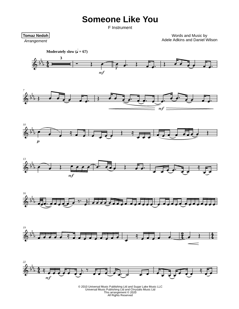 Someone Like You - F Instrument |