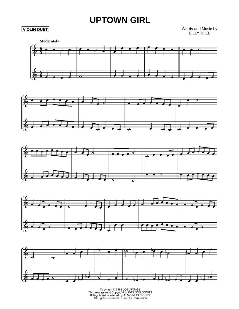 Uptown Girl - Violin Duet |