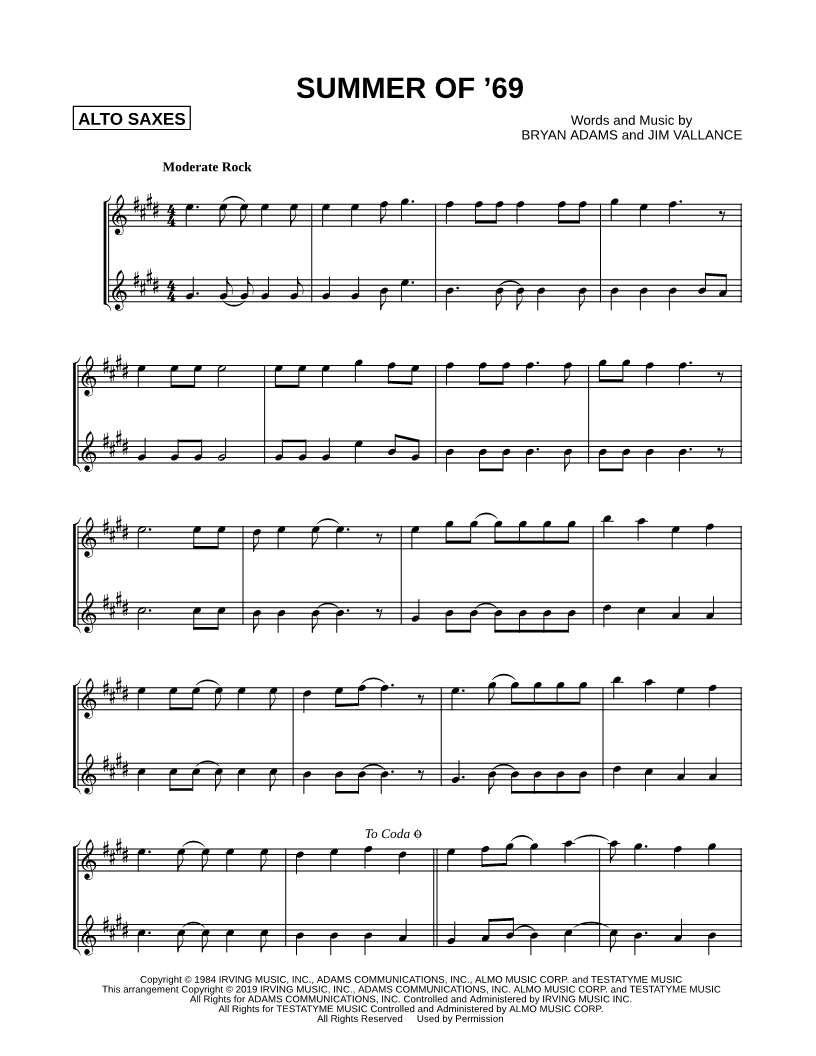 Summer of '69 - Alto Saxophone Duet |