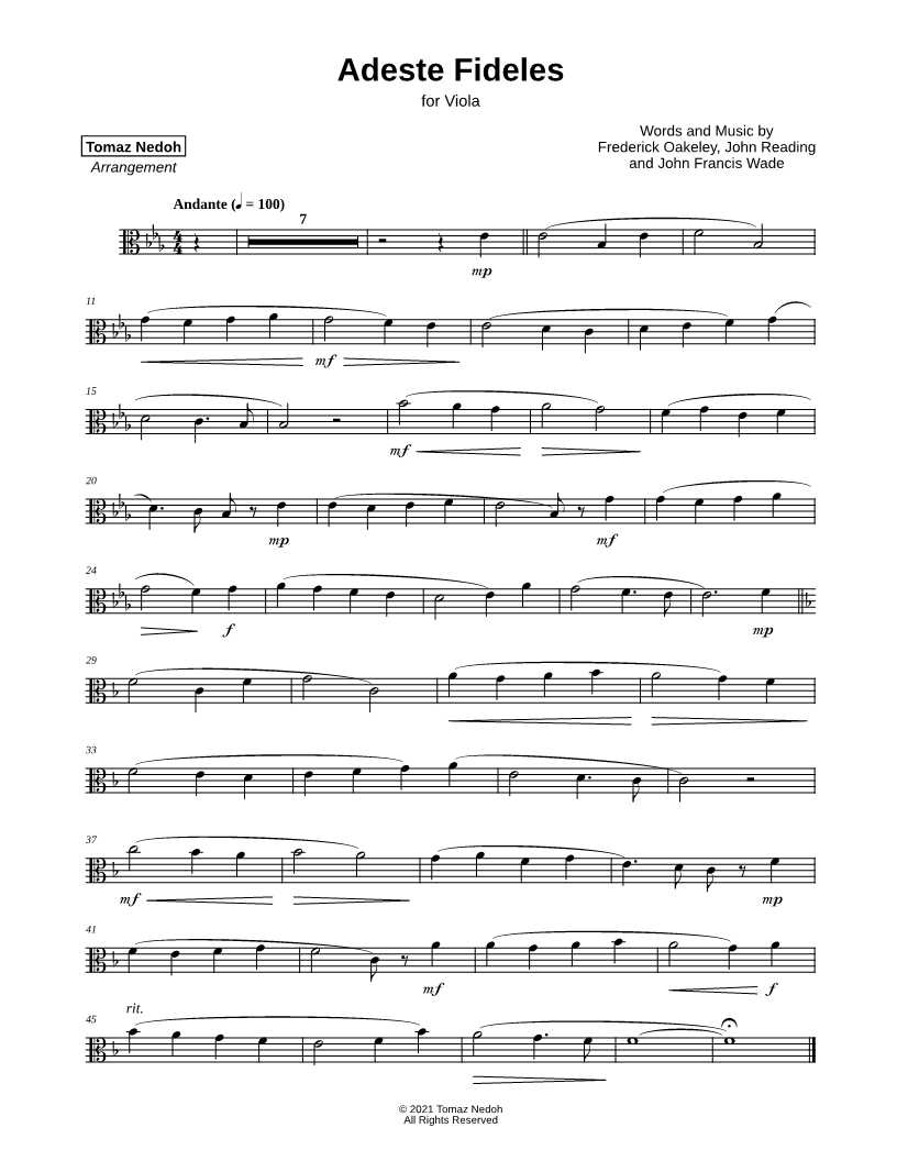 O Come, All Ye Faithful - Viola |