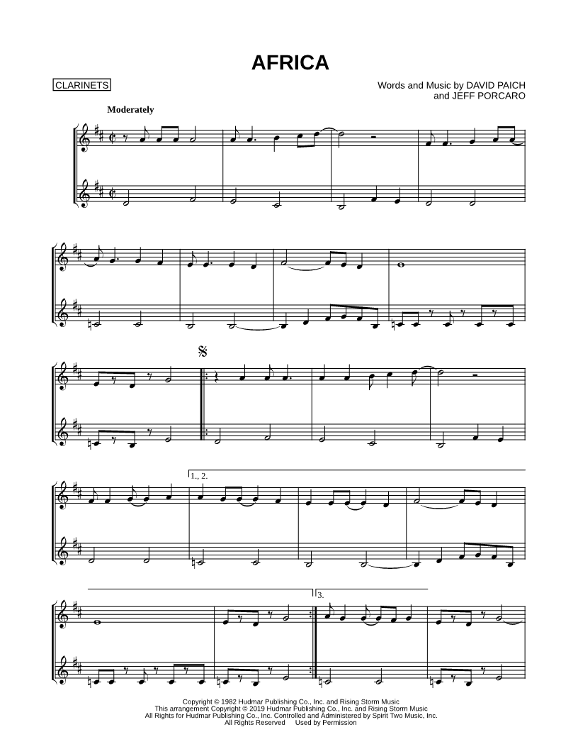 Africa - Clarinet Duet |