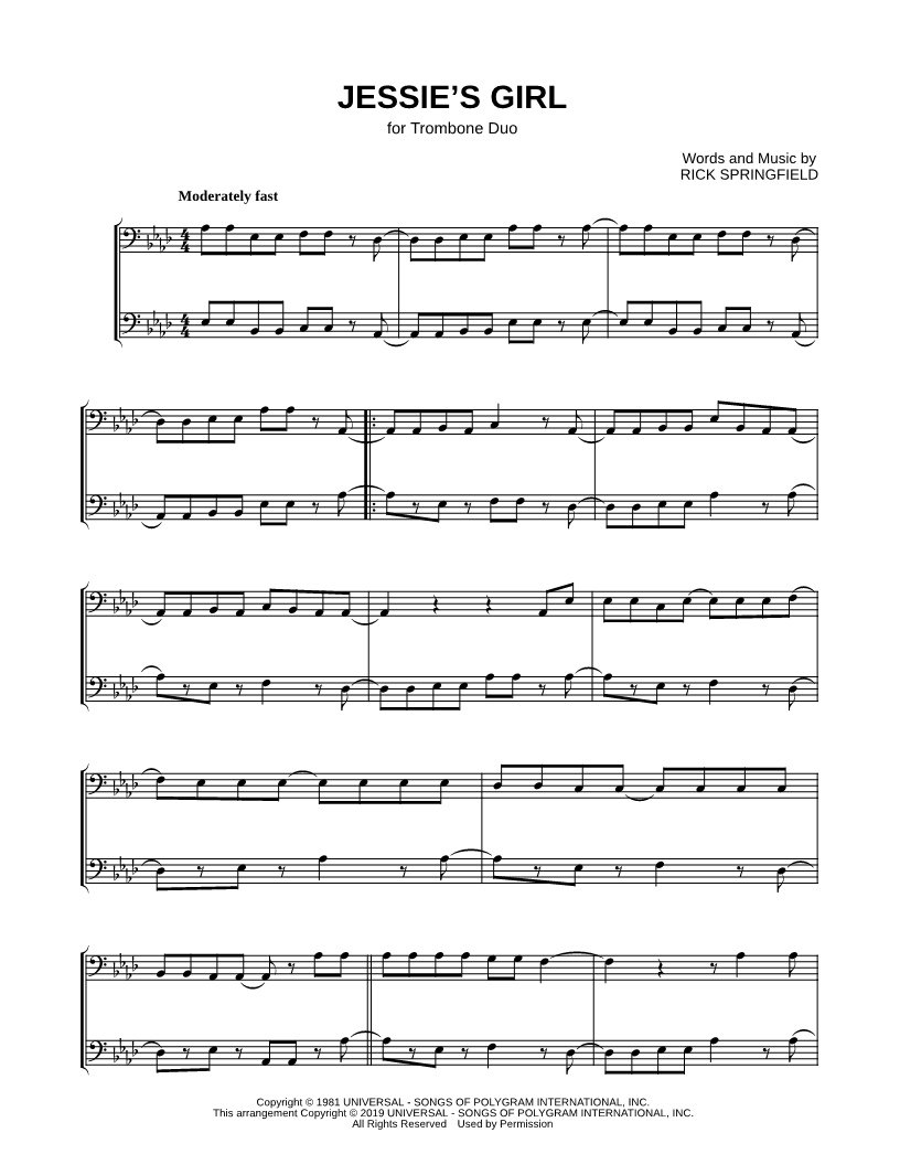 Jessie's Girl - Trombone Duet |