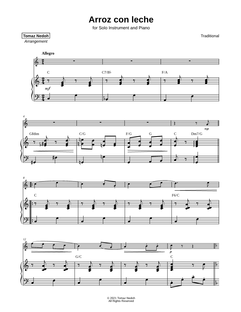 Arroz con Leche - C Instrument & Piano