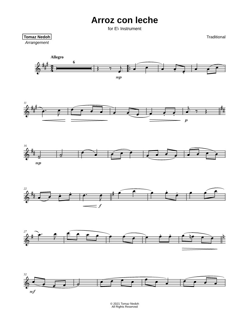 Arroz con Leche - Eb Instrument |