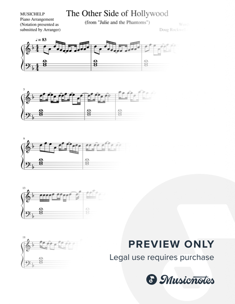 Musicnotes sells a wide variety of digital sheet music products including Singer Pros, Beginner Notes, Choral music, Piano Solos, Lead Sheets, Piano/Vocal/Guitar, Solo and Accompaniment, and fretted instrument tablature.