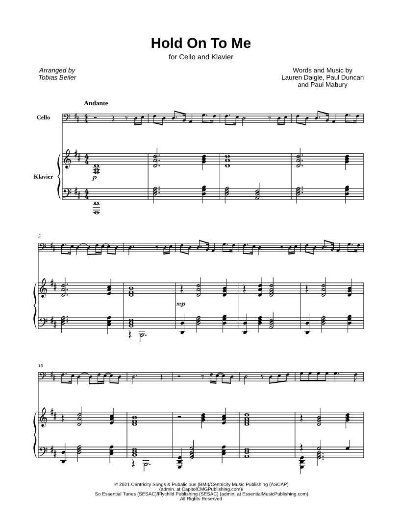 Hold On To Me - Cello & Piano |