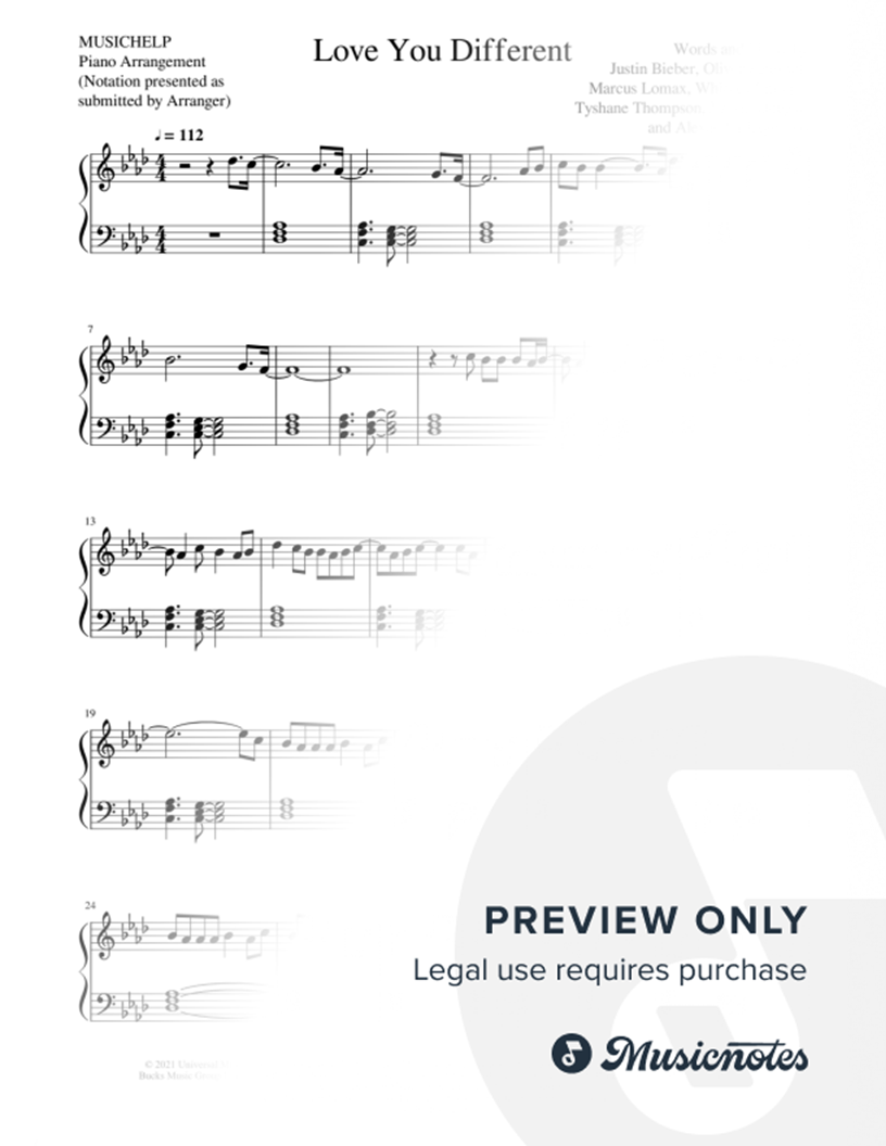 Many of the arrangements on Musicnotes have transpositions available, typically in C Major, as well as 3 sharps and 3 flats. If you do not see your desired key, you can request a transposition by reaching out to Customer Support.