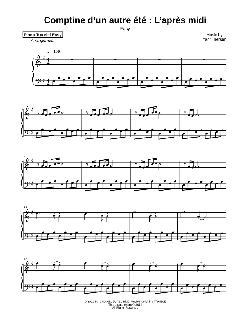 Comptine d'un autre été : L'après midi [easy] |