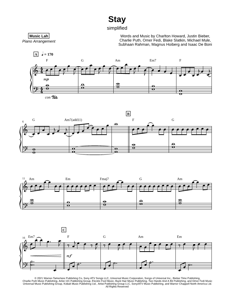Many of the arrangements on Musicnotes have transpositions available, typically in C Major, as well as 3 sharps and 3 flats. If you do not see your desired key, you can request a transposition by reaching out to Customer Support.