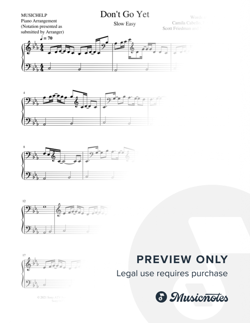 Many of the arrangements on Musicnotes have transpositions available, typically in C Major, as well as 3 sharps and 3 flats. If you do not see your desired key, you can request a transposition by reaching out to Customer Support.