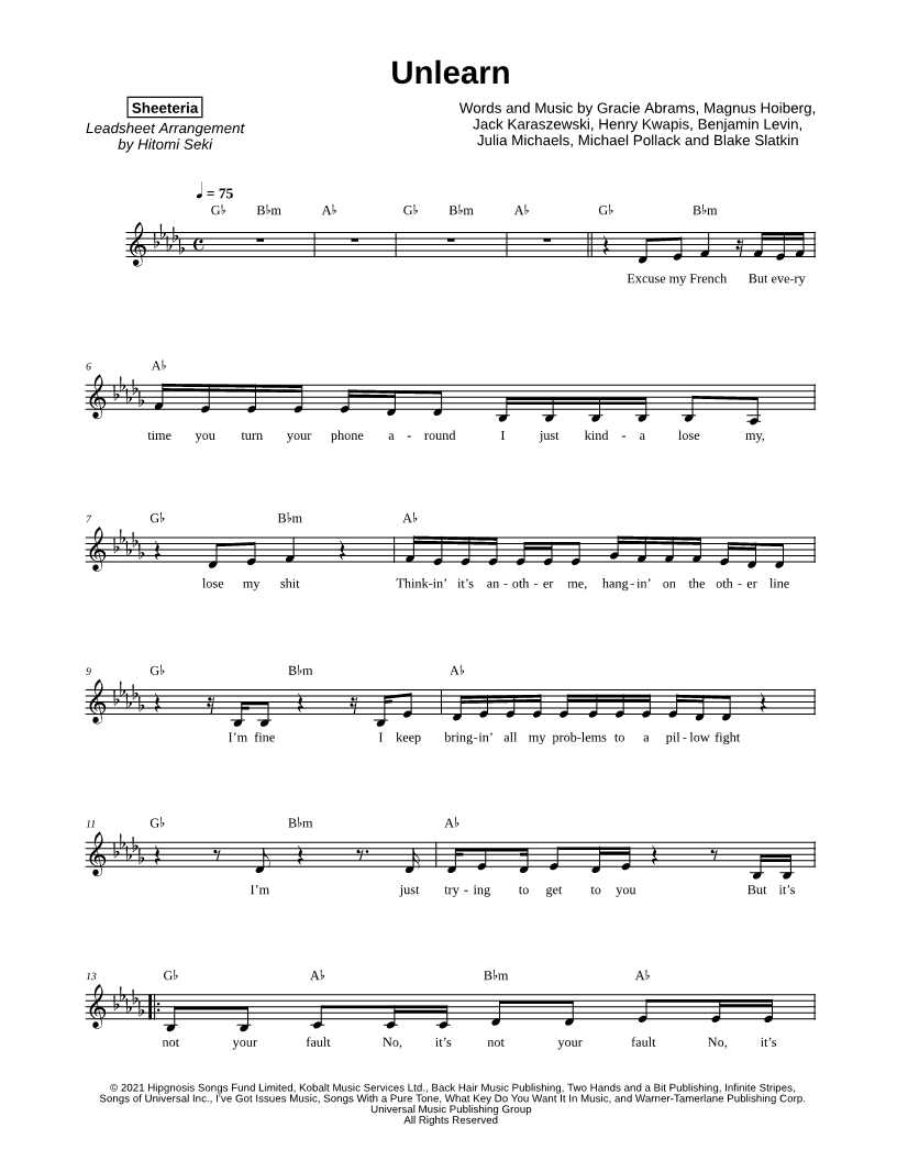 Lyrics/Melody/Chords Leadsheet |