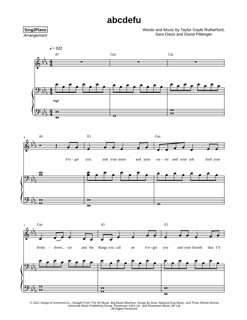 Voice, range: G3-C5 Piano Backup Vocals | |