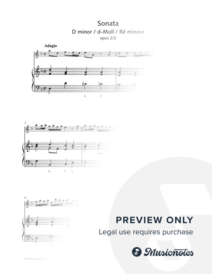 Sonata in D Minor, Op. 2 No. 2 - Treble Recorder & Basso Continuo |