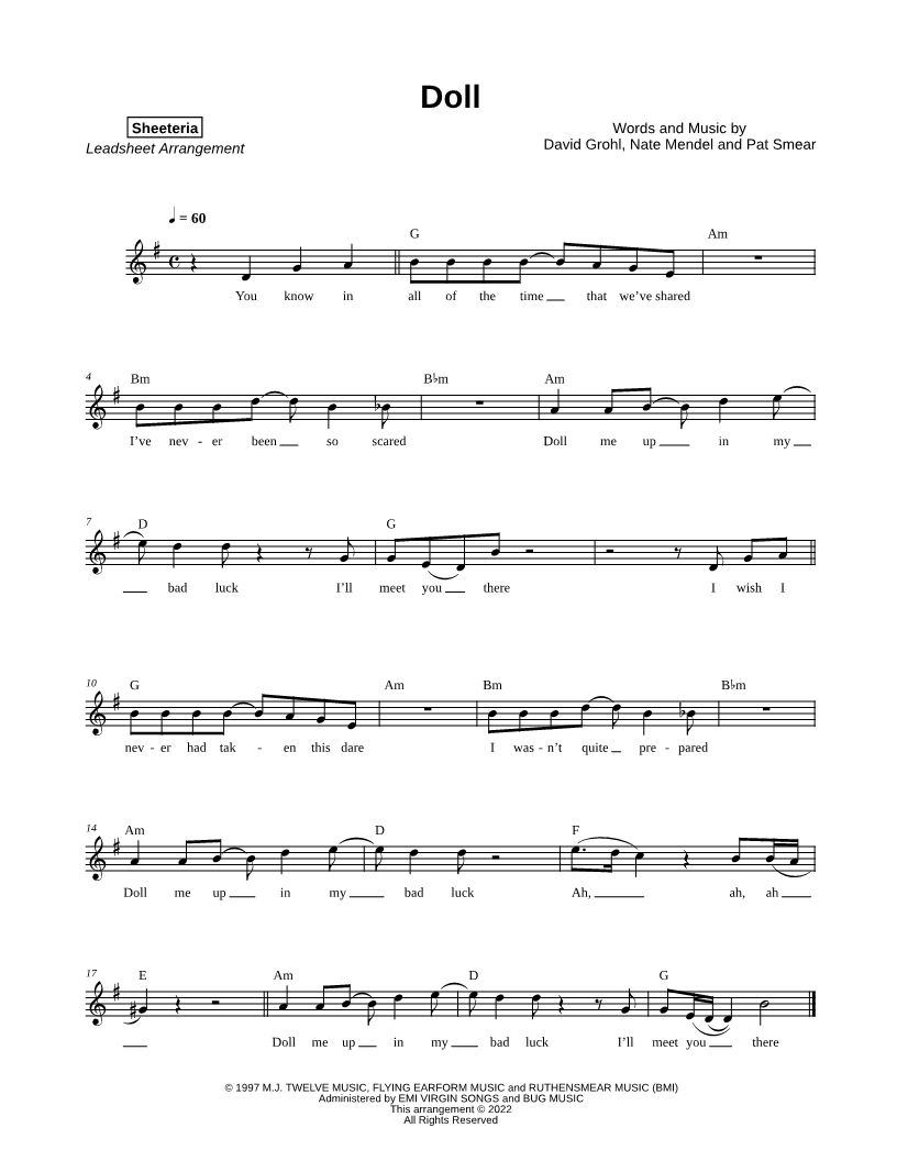 Leadsheets typically only contain the lyrics, chord symbols and melody line of a song and are rarely more than one page in length. Musicians will often use these skeletons to improvise their own arrangements. Leadsheets often do not contain complete lyrics to the song.