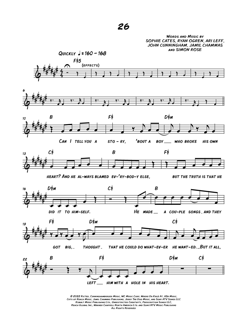 Leadsheets typically only contain the lyrics, chord symbols and melody line of a song and are rarely more than one page in length. Musicians will often use these skeletons to improvise their own arrangements. Leadsheets often do not contain complete lyrics to the song.