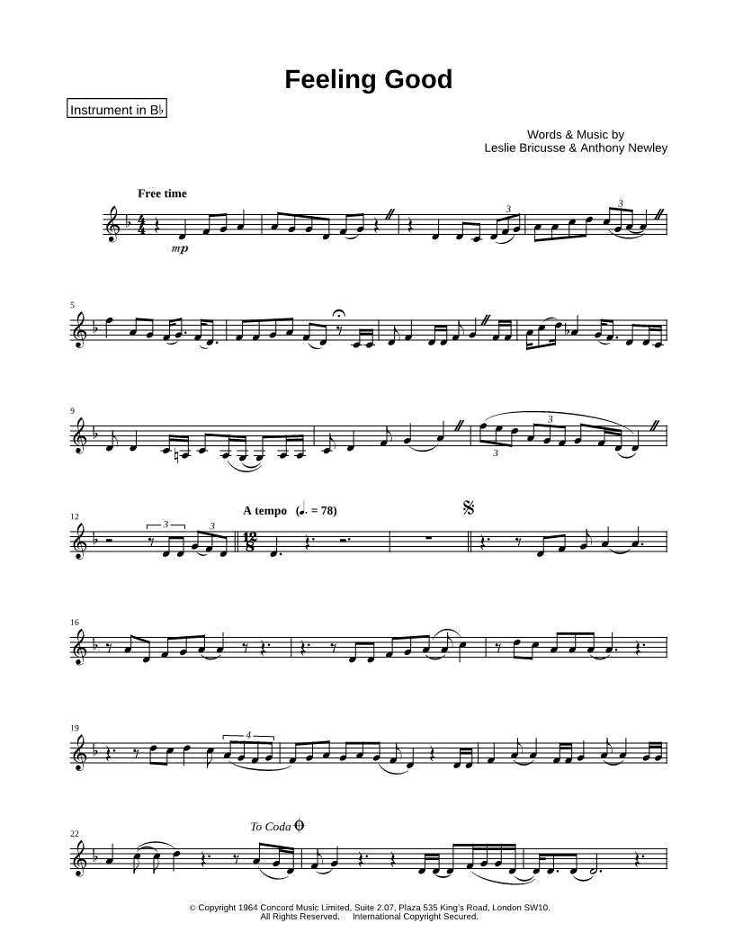 Feeling Good - Bb Instrument |