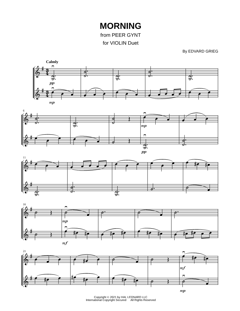 Morning Mood - Violin Duet |
