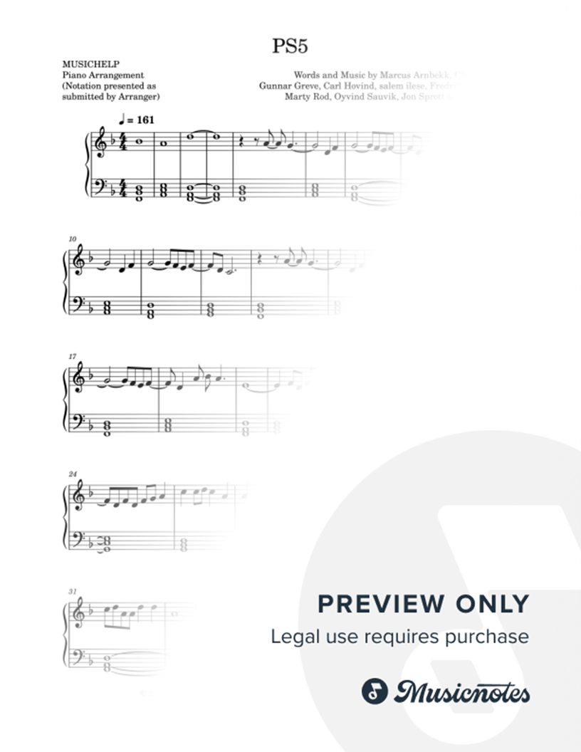 Many of the arrangements on Musicnotes have transpositions available, typically in C Major, as well as 3 sharps and 3 flats. If you do not see your desired key, you can request a transposition by reaching out to Customer Support.