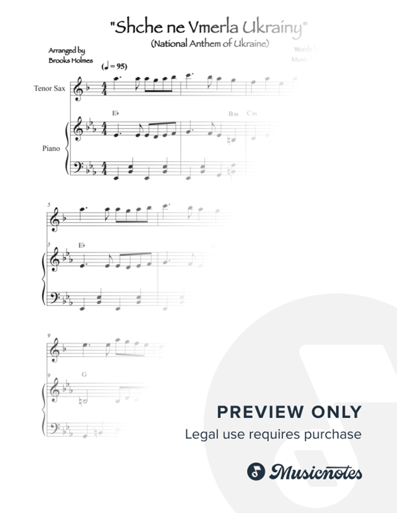 Sce Ne Vmerla Ukrainy - Tenor Saxophone & Piano |