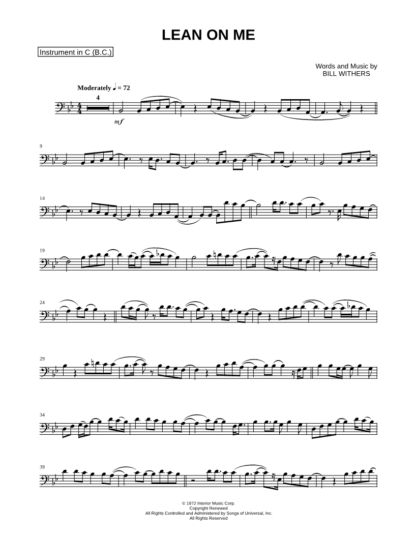 Lean on Me - Bass Clef Instrument |