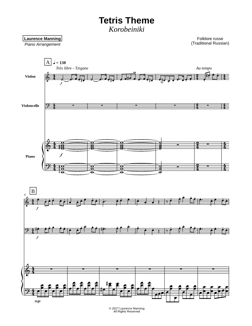 Tetris Theme - Violin, Cello & Piano |