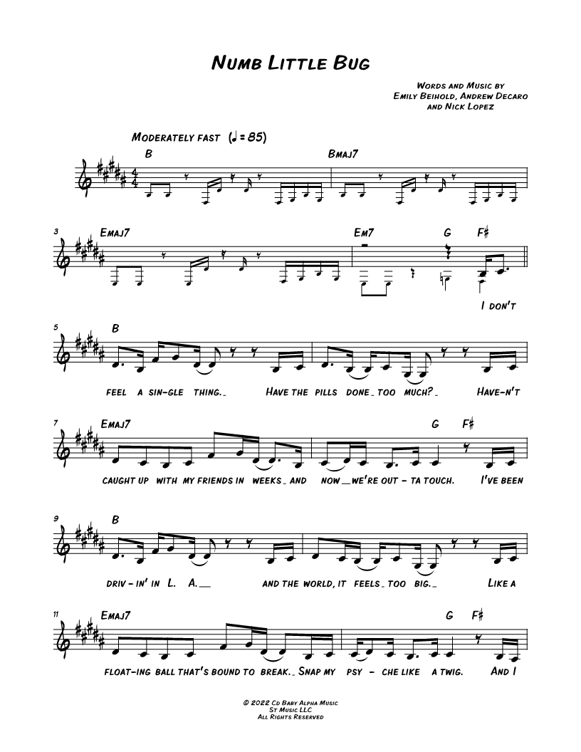 Leadsheets typically only contain the lyrics, chord symbols and melody line of a song and are rarely more than one page in length. Musicians will often use these skeletons to improvise their own arrangements. Leadsheets often do not contain complete lyrics to the song.