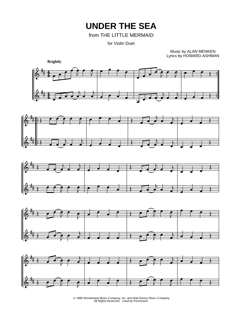 Under the Sea - Violin Duet |