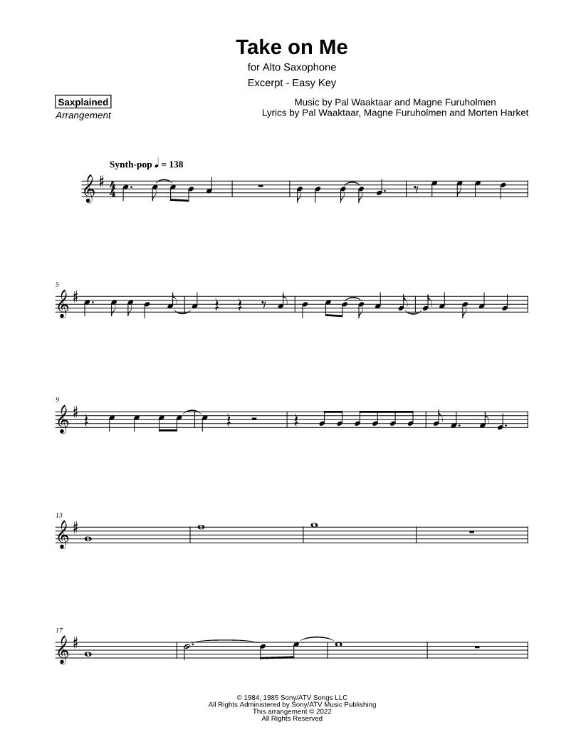 Take on Me [excerpt - easy] |