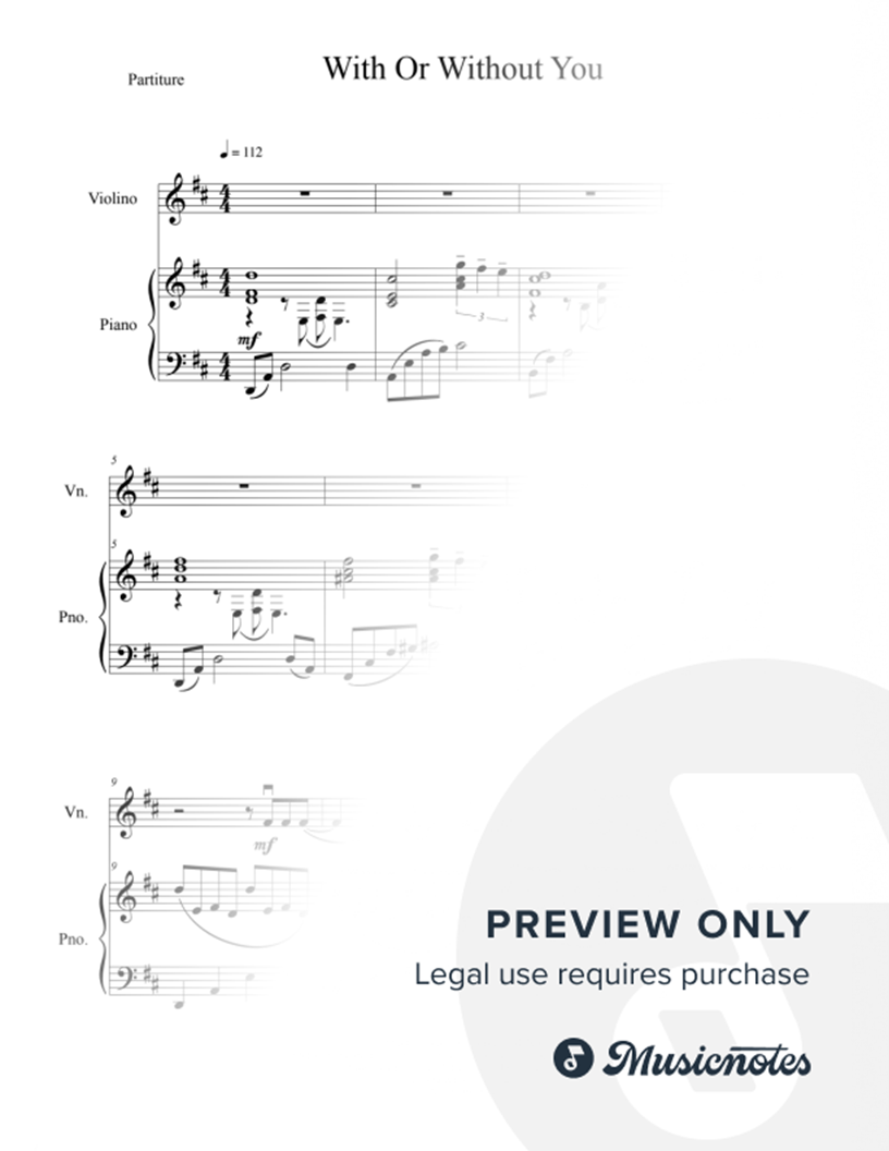With or Without You - Violin & Piano |