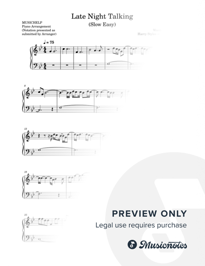 Musicnotes sells a wide variety of digital sheet music products including Singer Pros, Beginner Notes, Choral music, Piano Solos, Lead Sheets, Piano/Vocal/Guitar, Solo and Accompaniment, and fretted instrument tablature.