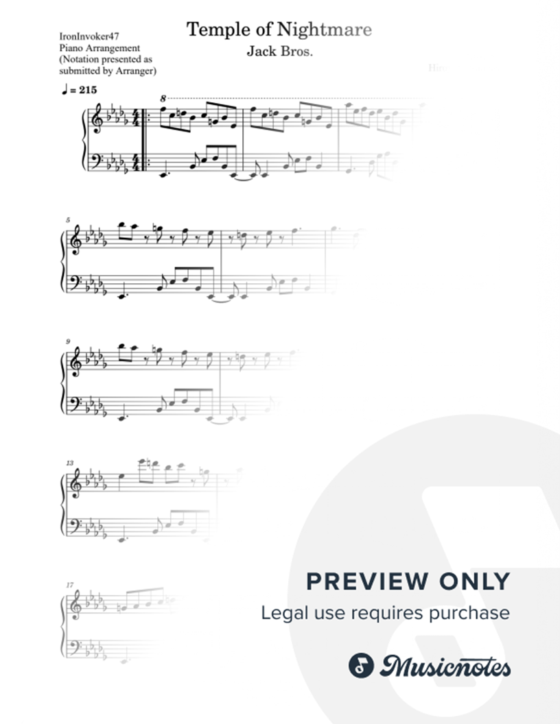 Musicnotes sells a wide variety of digital sheet music products including Singer Pros, Beginner Notes, Choral music, Piano Solos, Lead Sheets, Piano/Vocal/Guitar, Solo and Accompaniment, and fretted instrument tablature.